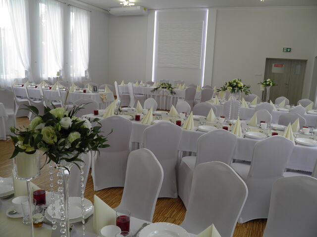 " Dom Przyjęć HELENA" jest naszym głównym obiektem, w którym odbywają się wszystkie przyjęcia. Został on całkowicie przybudowany i ponownie oddany do użytkowania w maju 2019roku. Do dyspozycji gości oddajemy salę bankietową, na której można zorganizować przyjęcia do 100 osób, patio, plac zabaw, oraz tereny rekreacyjno-sportowe znajdujące się w bezpośrednim sąsiedztwie. Cały obiekt znajduje się na poziomie "0", czyli na parterze w związku z czym nie ma u nas barier architektonicznych.